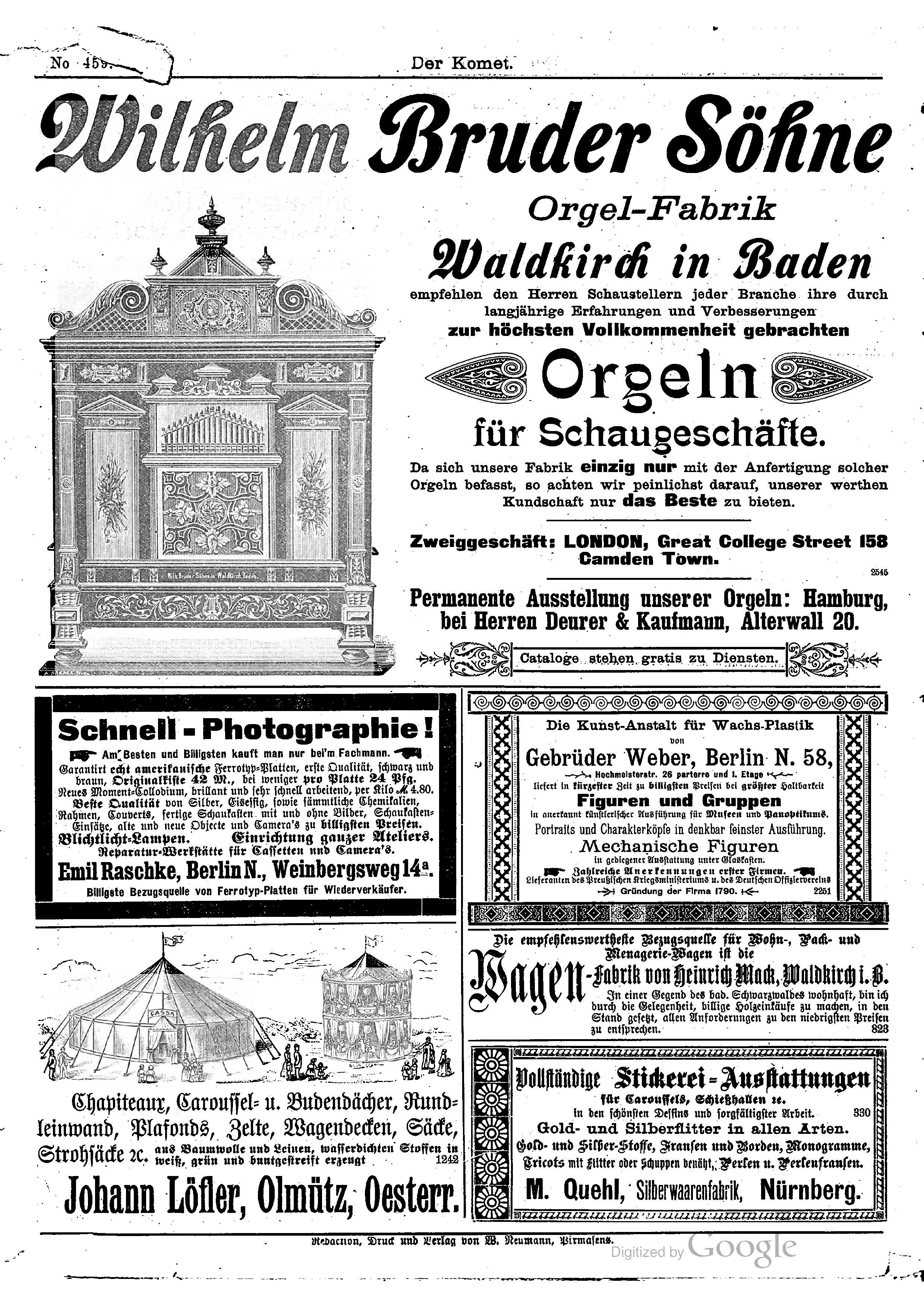 Central to this endeavour are itinerant showpeople periodicals; trade papers that offer invaluable insights into the lives and networks of showpeople. These journals were published by showpeople’s unions or specialized publishing companies. For example, the publisher KOMET in Pirmasens, Germany, has been printing Der Komet twice a month since 1883. This journal was also read outside Germany and contained information on life events, itinerant fair routes, calendars, trade listings, reports from associated trade fairs, and advertisements.